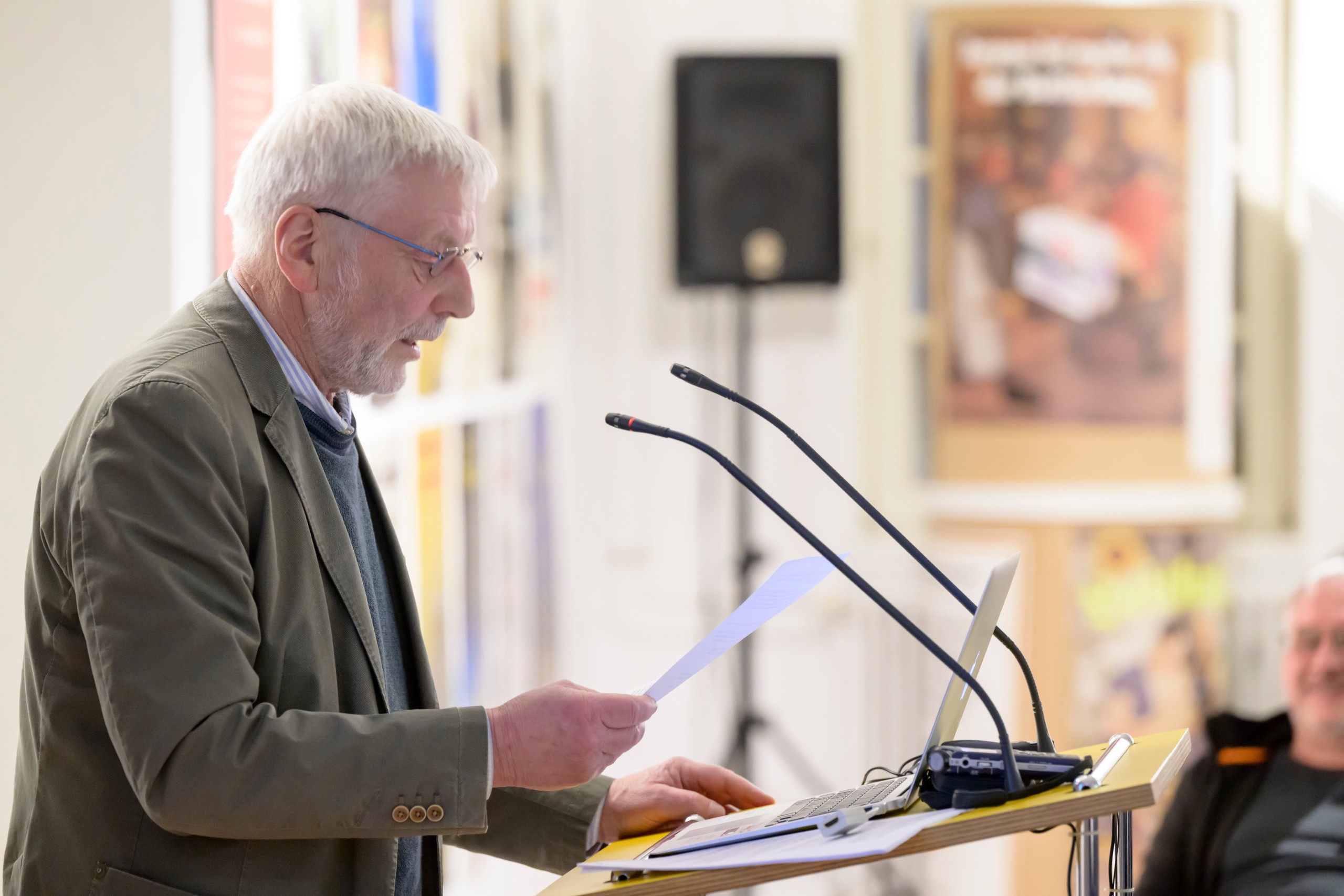 - Vortrag Manfred Mayer u╠êber Klaus Staeck 088 – Manfred Mayer bei seinem Vortrag.