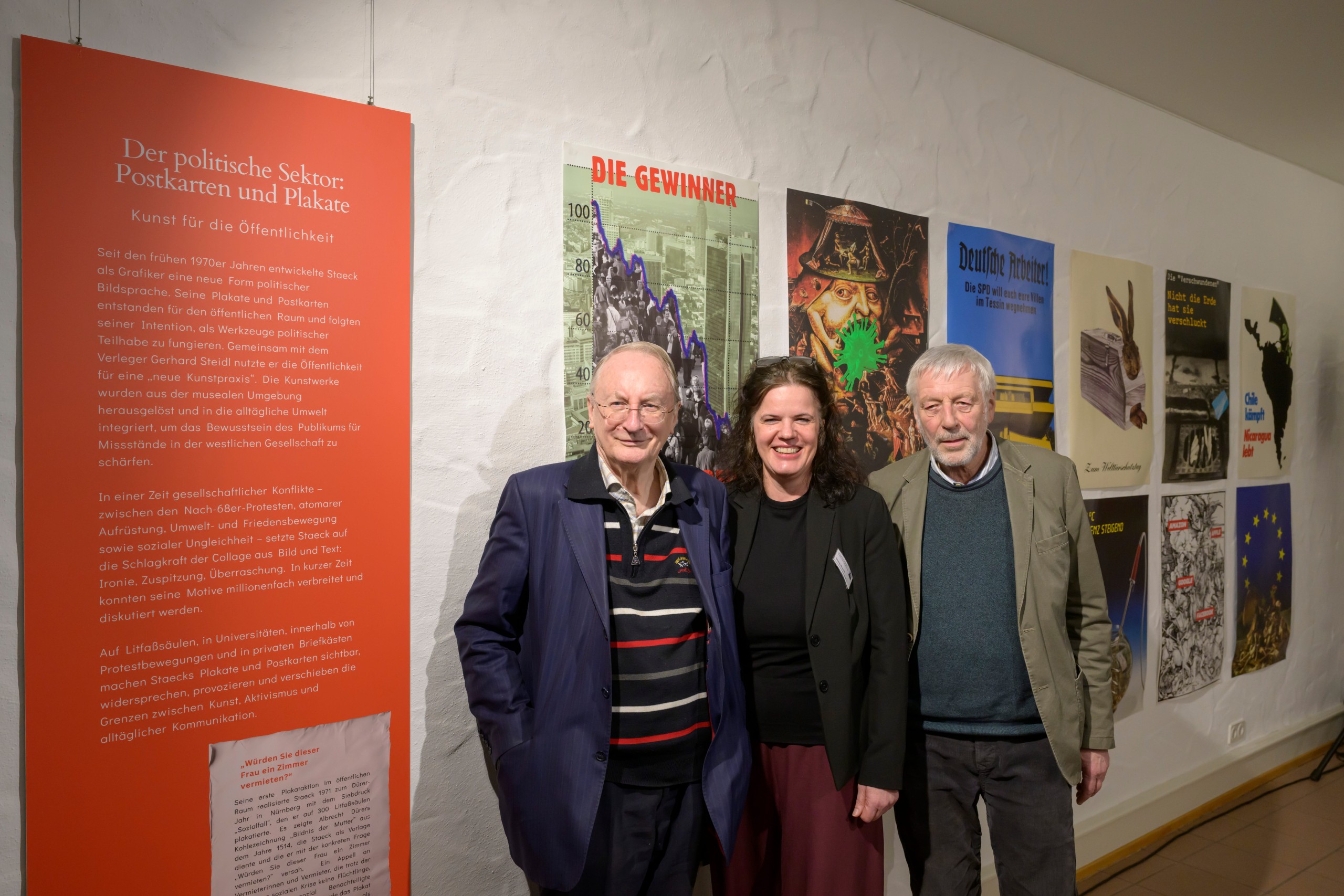 - Vortrag Manfred Mayer u╠êber Klaus Staeck 195 – (v. l. n. r.): Klaus Staeck, Diana Busch und Manfred Mayer.